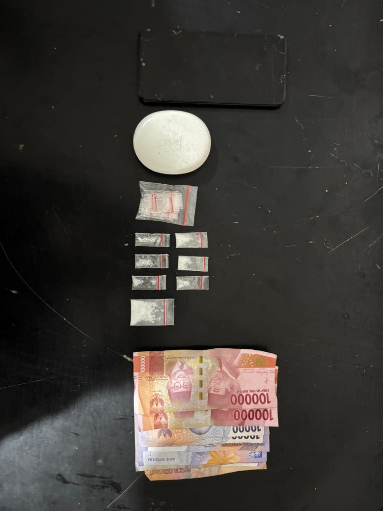 Selain barang bukti berupa narkotika, petugas juga menyita barang bukti lainnya berupa satu unit ponsel Android merek Oppo warna hitam, uang tunai sebesar Rp 265.000 yang diduga hasil penjualan narkotika, satu bal plastik klip kosong, dan satu buah kotak bedak yang digunakan untuk menyimpan sabu.