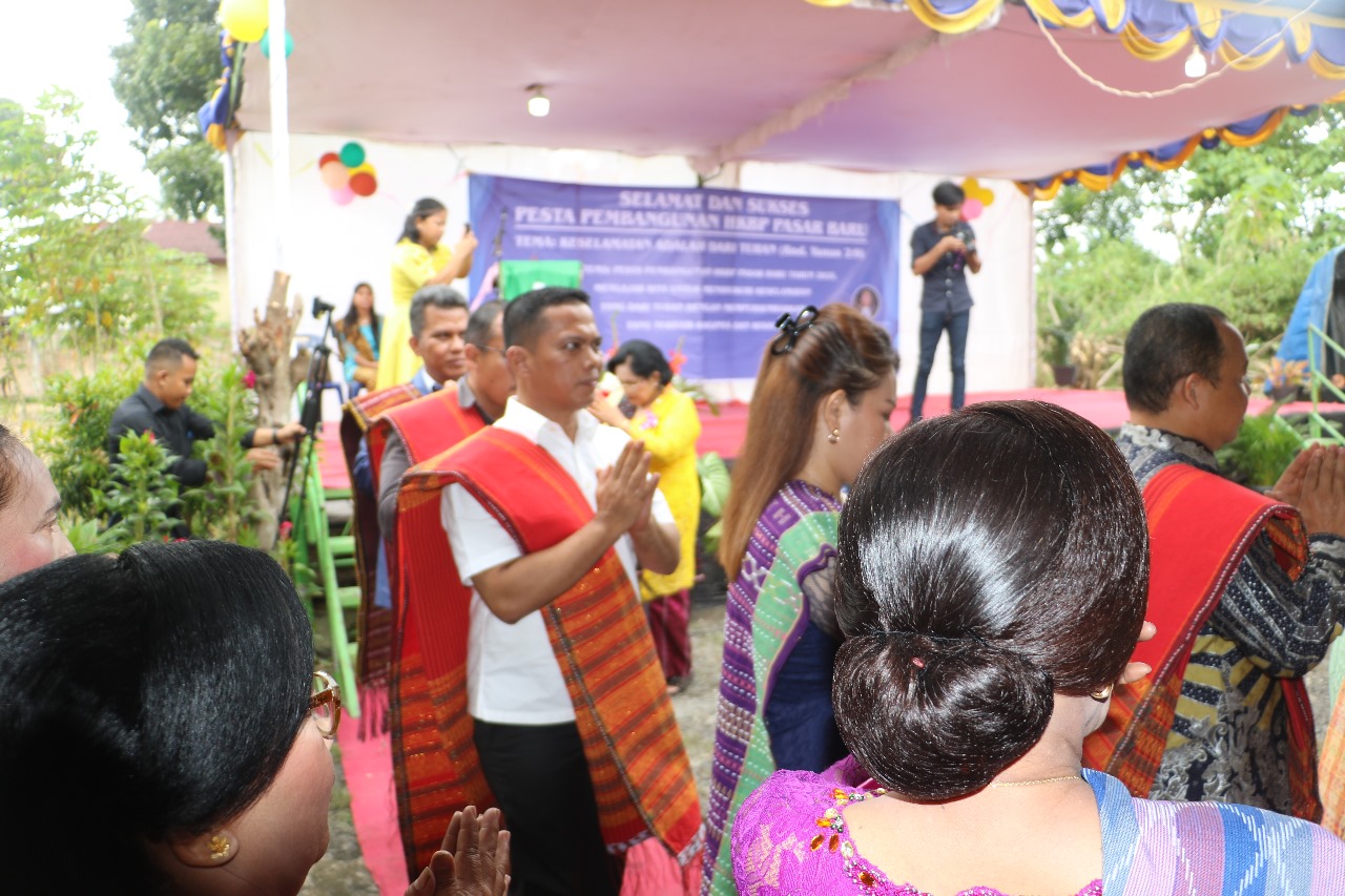Sebelum acara dimulai, Sekda Junaedi terlebih dahulu mengikuti ibadah Minggu dengan topik “Manjamitahon Barita Na Uli Sian Nasa Roha.”