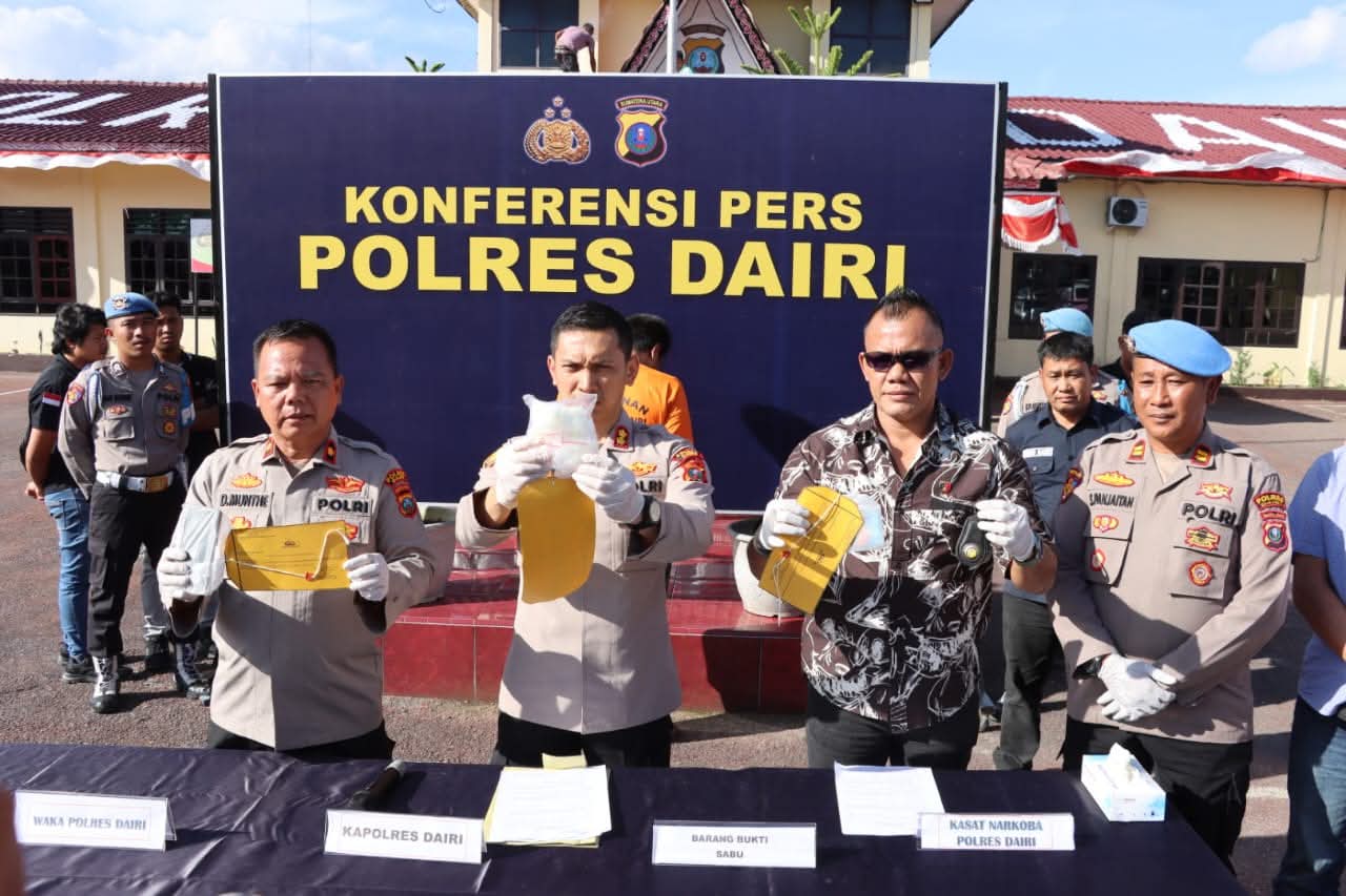 DAIRI – Kepolisian Resor (Polres) Dairi kembali menorehkan prestasi dalam memberantas peredaran narkotika di wilayah hukumnya. Seorang sopir angkutan umum yang juga berperan sebagai kurir narkoba, berinisial SS, berhasil diringkus aparat saat membawa sabu dan ekstasi, Kamis (14/8/2025).