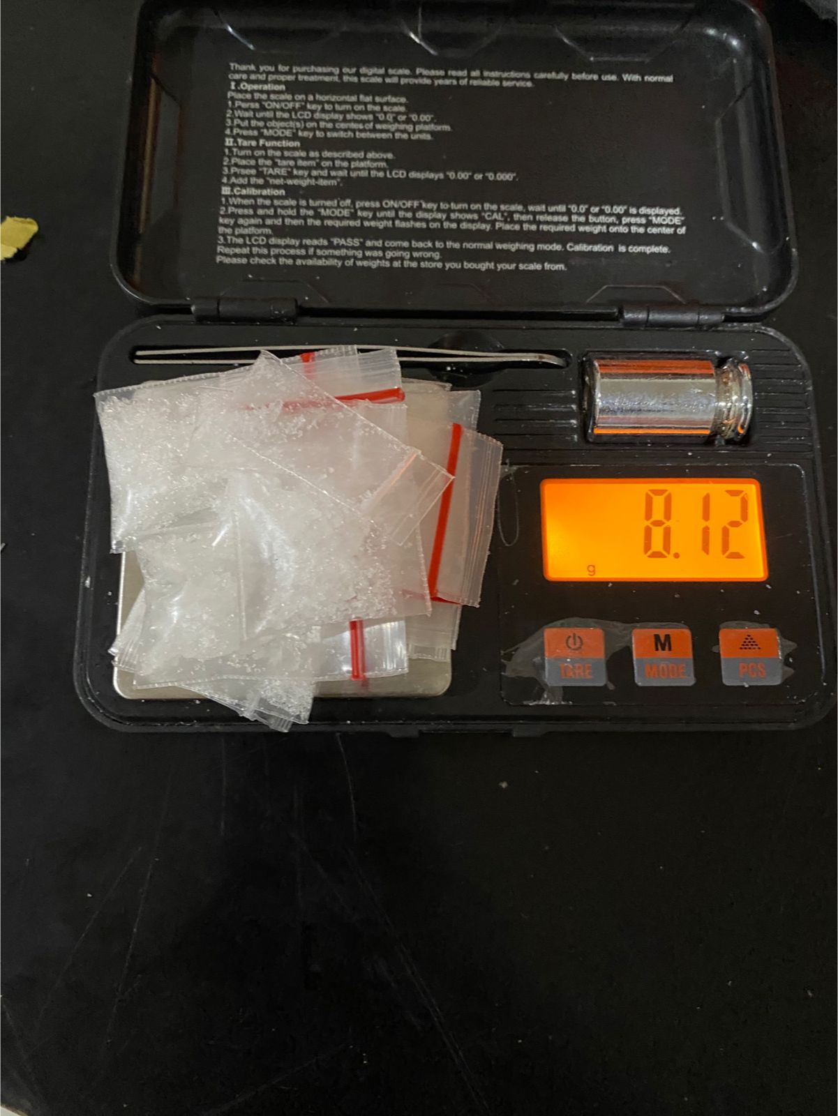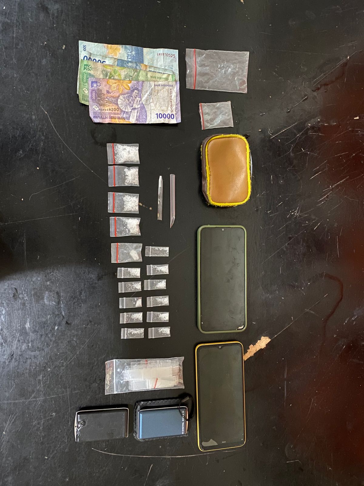Dalam penggeledahan, petugas menemukan satu plastik klip berisi sabu di dekat Syahrizal, yang diakui sebagai miliknya. Pencarian lanjutan menemukan delapan paket sabu dengan berbagai ukuran dan dua timbangan elektronik yang disembunyikan di bawah kasur.