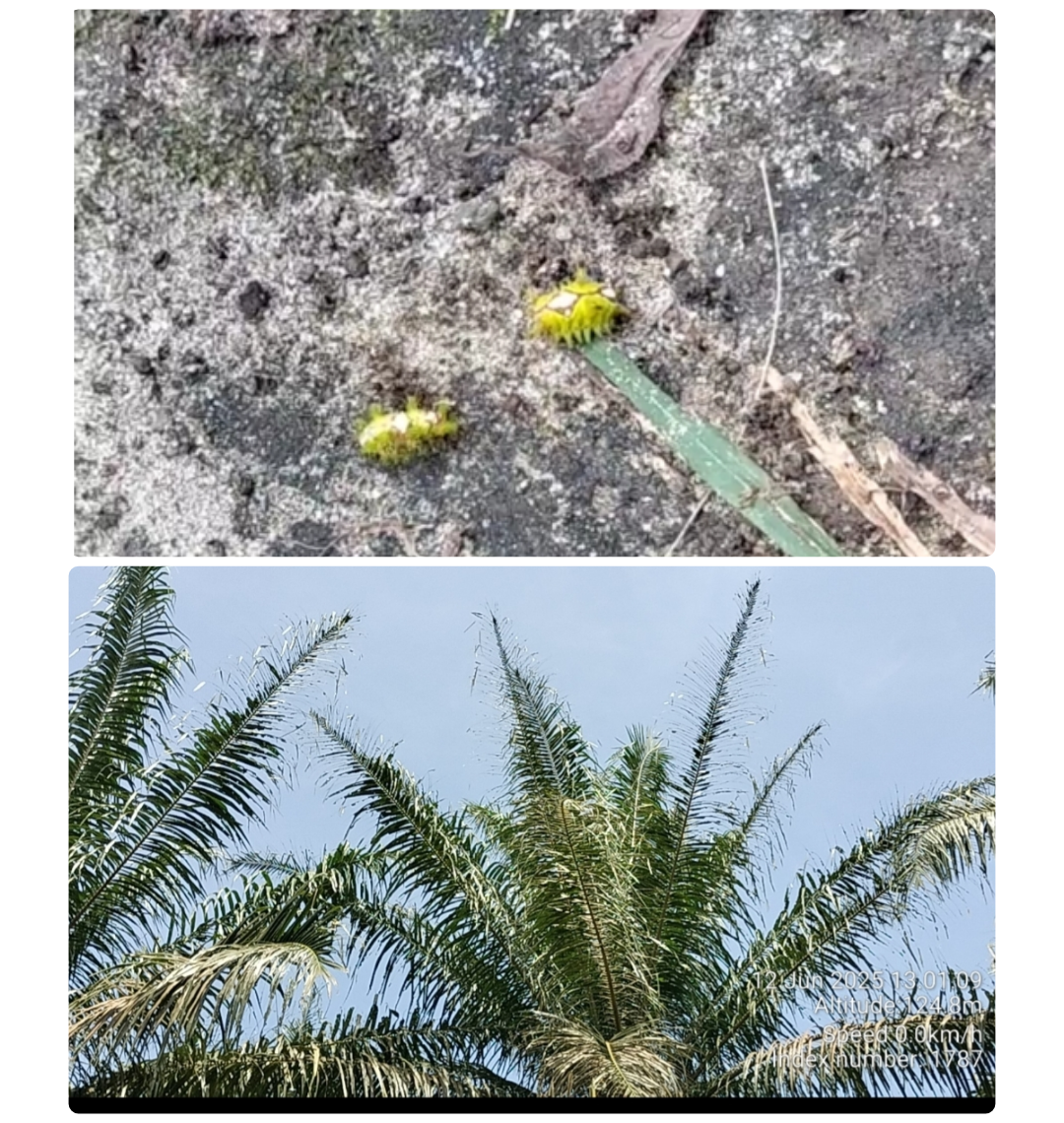 Dari hasil pantauan dan informasi yang dihimpun di lapangan, luas lahan yang terdampak di duga mencapai puluhan hektare. Tanaman sawit yang terserang tampak mengalami kerusakan berat, khususnya pada bagian daun. Daun kelapa sawit terlihat habis dimakan ulat api hingga hanya tersisa tulang-tulang daunnya saja. Kondisi ini tentu sangat merugikan, mengingat daun merupakan bagian vital tanaman untuk proses fotosintesis yang menentukan produktivitas tandan buah segar (TBS).