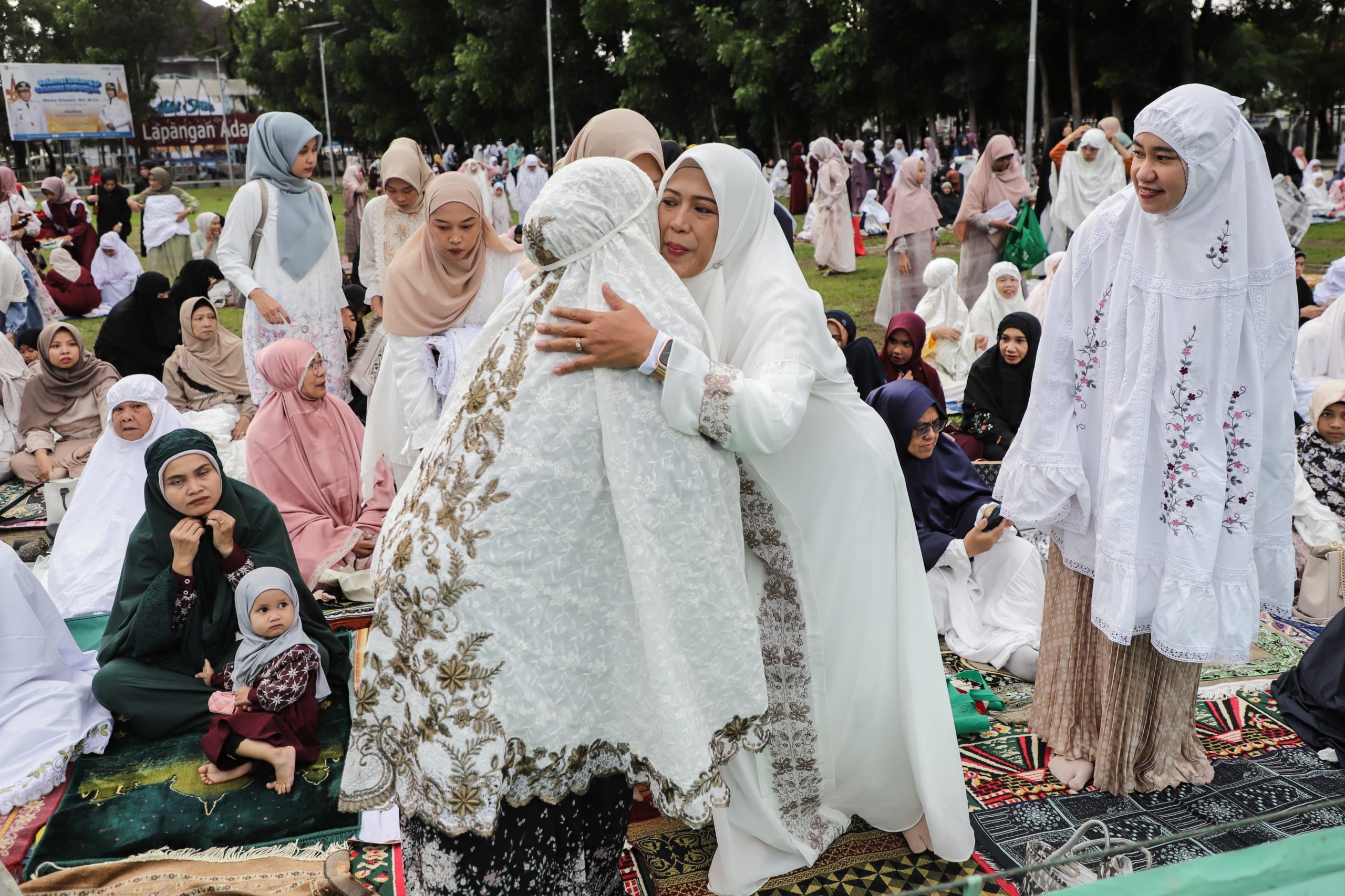 Usai sholat, Herlina mengucapkan Selamat Hari Raya Idul Fitri 1 Syawal 1446 H. Mohon maaf lahir dan batin.