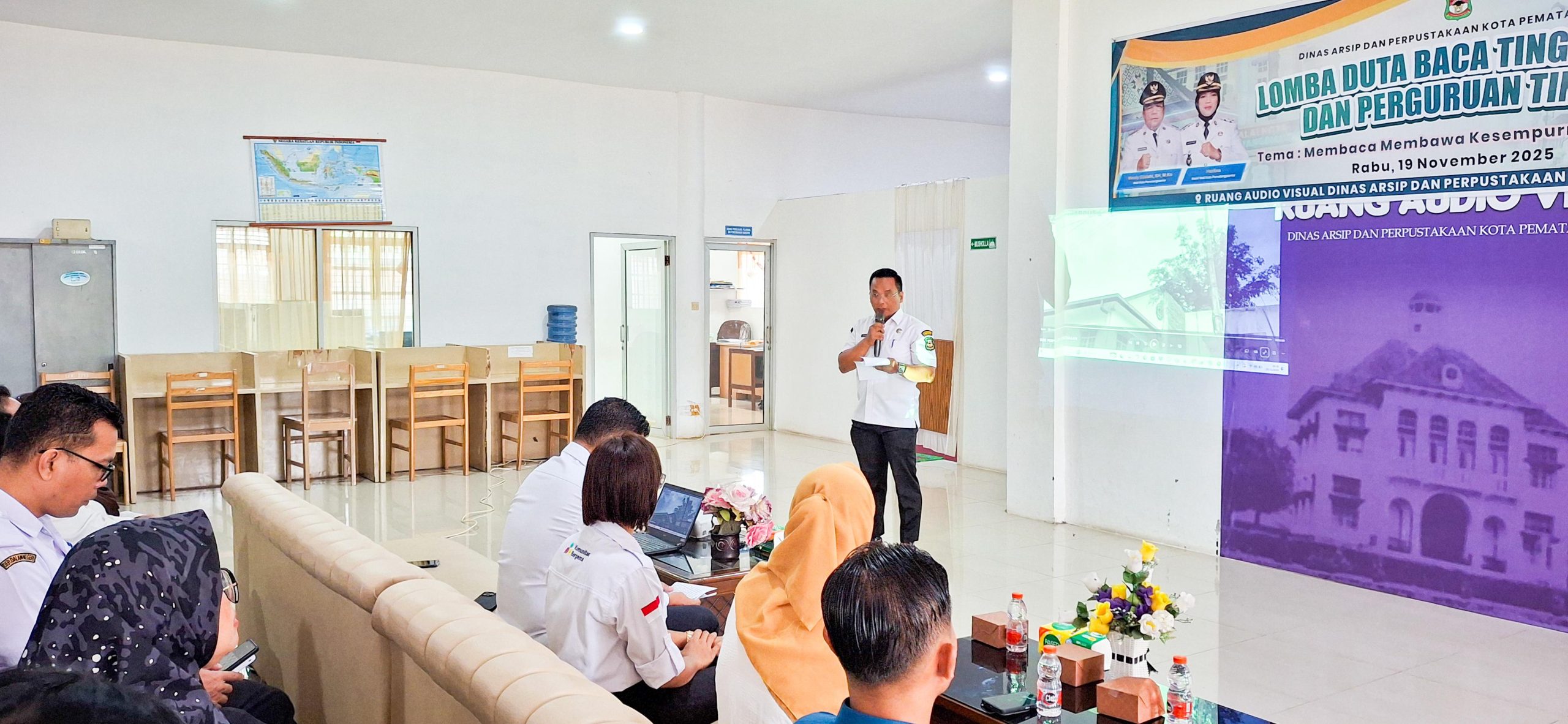 PEMATANGSIANTAR – Wali Kota Pematangsiantar Wesly Silalahi SH MKn, yang diwakili Kepala Dinas Arsip dan Perpustakaan Hamzah Fanshuri Damanik SSTP MSi, resmi membuka Lomba Pemilihan Duta Baca Tingkat SMA dan Perguruan Tinggi/Universitas Kota Pematangsiantar Tahun 2025. Kegiatan tersebut digelar di Ruang Audiovisual Kantor Dinas Arsip dan Perpustakaan Kota Pematangsiantar, Rabu (19/11/2025).