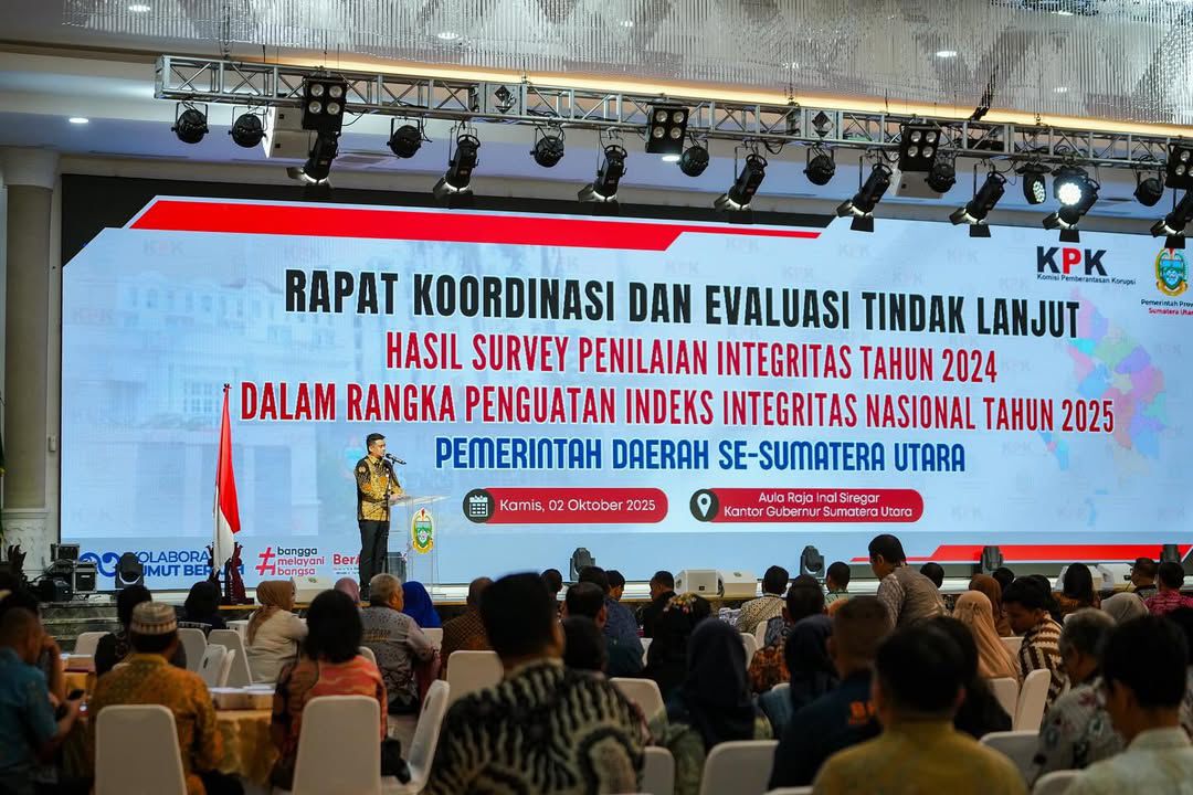 “Kondisi Integritas Pemerintah Sumut Tahun 2024 dengan skor 58,55 poin. Angka ini menempatkan Sumut pada kategori Rentan. Karena itu, hasil SPI ini menjadi bahan evaluasi untuk memperkuat transparansi pengadaan barang dan jasa, sistem pengawasan internal, sekaligus melibatkan masyarakat dalam pengawasan pembangunan daerah,” ujar Bobby.
