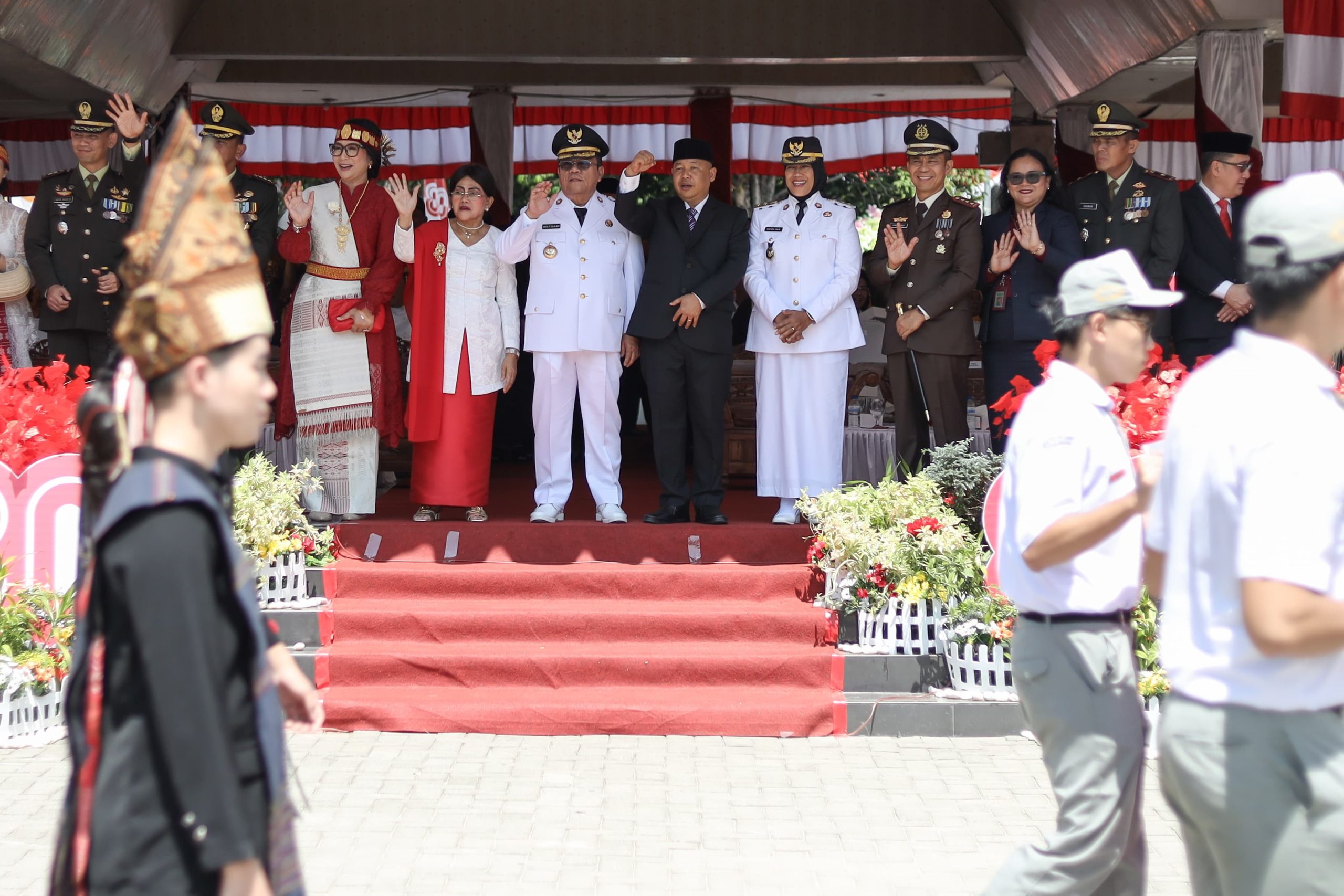 PEMATANGSIANTAR – Wali Kota Pematangsiantar Wesly Silalahi SH MKn didampingi Ketua TP PKK Ny. Liswati, Wakil Wali Kota Herlina, serta unsur Forkopimda melepas Karnaval Gempita Kemerdekaan Semarak Dirgahayu ke-80 Kemerdekaan Republik Indonesia (RI). Karnaval tersebut digelar usai pelaksanaan upacara peringatan Detik-detik Proklamasi Kemerdekaan RI di Lapangan Adam Malik, Minggu (17/8/2025).