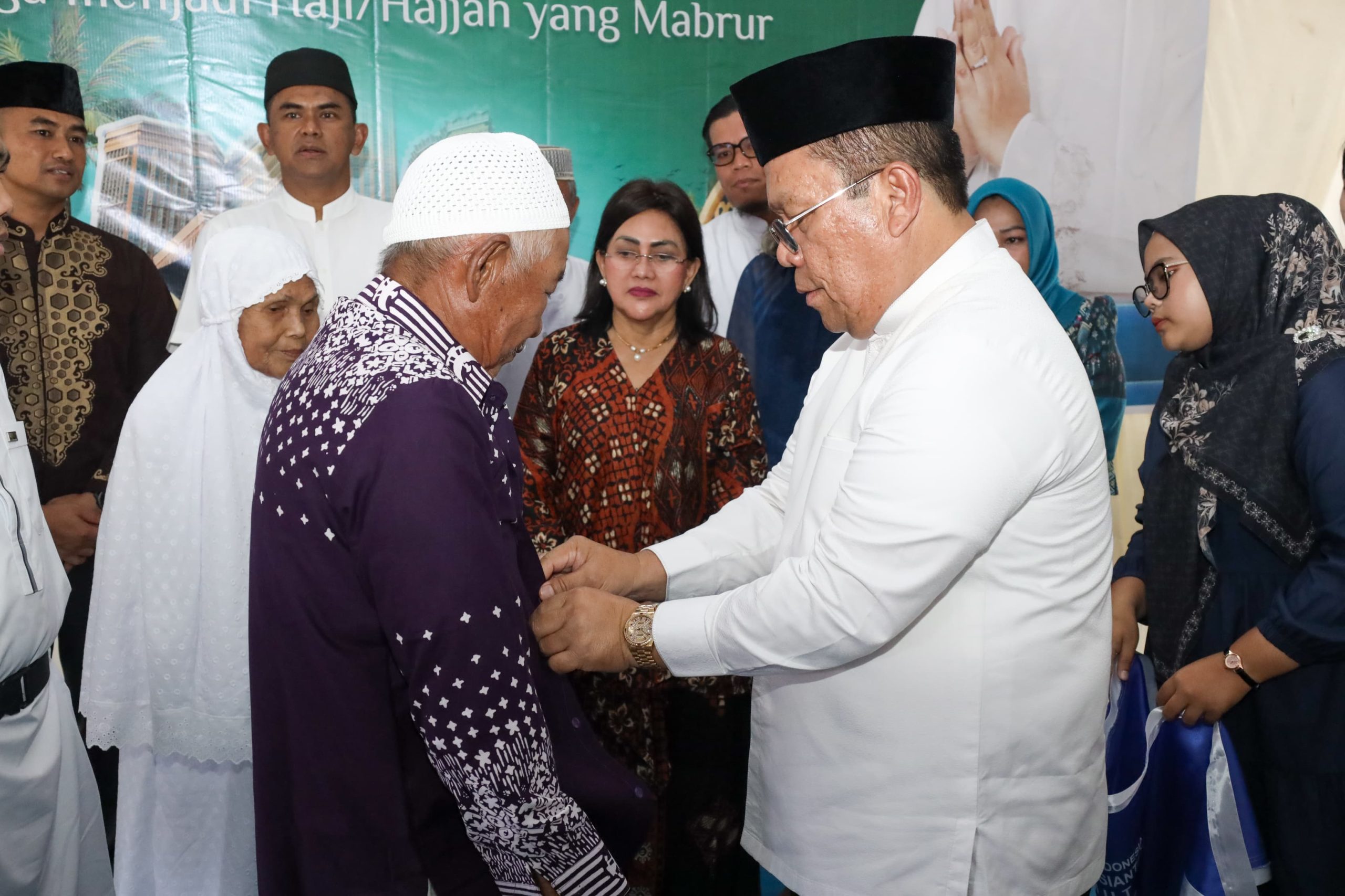 “Semoga Bapak dan Ibu yang berangkat bisa menjadi haji yang mabrur dan haji yang maqbul atau diterima, dan diberi balasan berupa kebaikan atau pahala,” ujarnya.