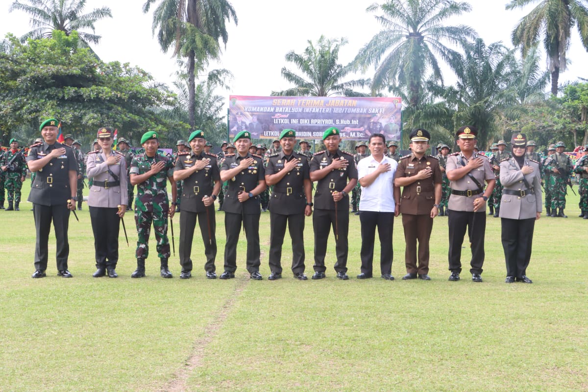 SIMALUNGUN -;Jabatan Komandan Yonif (Danyon) 122/Tombak Sakti (TS) diserahterimakan dari Letkol Inf Diki Apriyadi SHub Int kepada Letkol Inf Wahidin Sobar SSos MSc. Upacara sertijab yang dihadiri Wali Kota Pematangsiantar Wesly Silalahi SH MKn diwakili Sekretaris Daerah (Sekda) Junaedi Antonius Sitanggang SSTP MSi itu, digelar di Lapangan Mako Yonif 122/TS, Jalan Pematangsiantar-Tanah Jawa Nagori Silau Malaha Kecamatan Siantar Kabupaten Simalungun, Rabu (11/06/2025) siang.