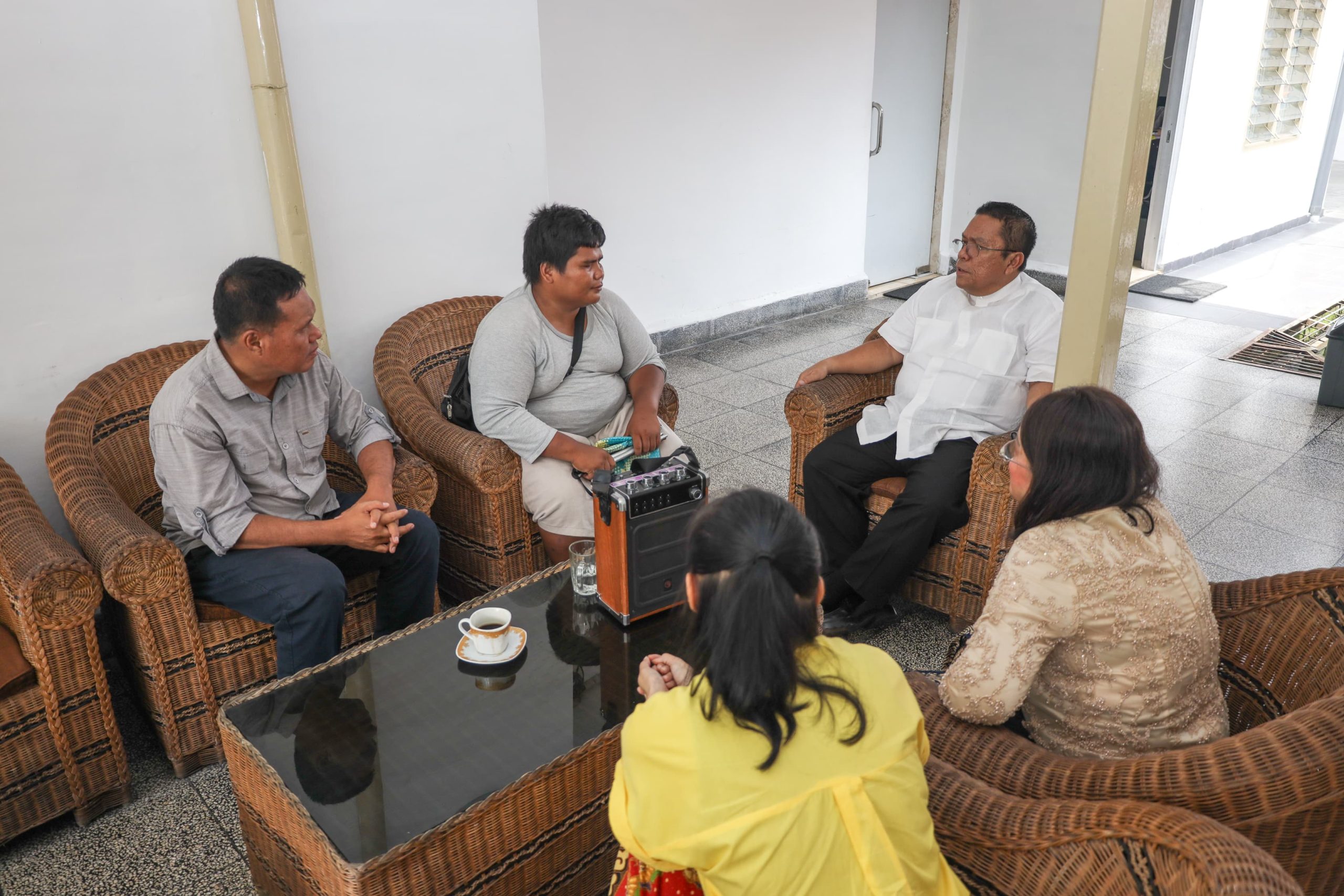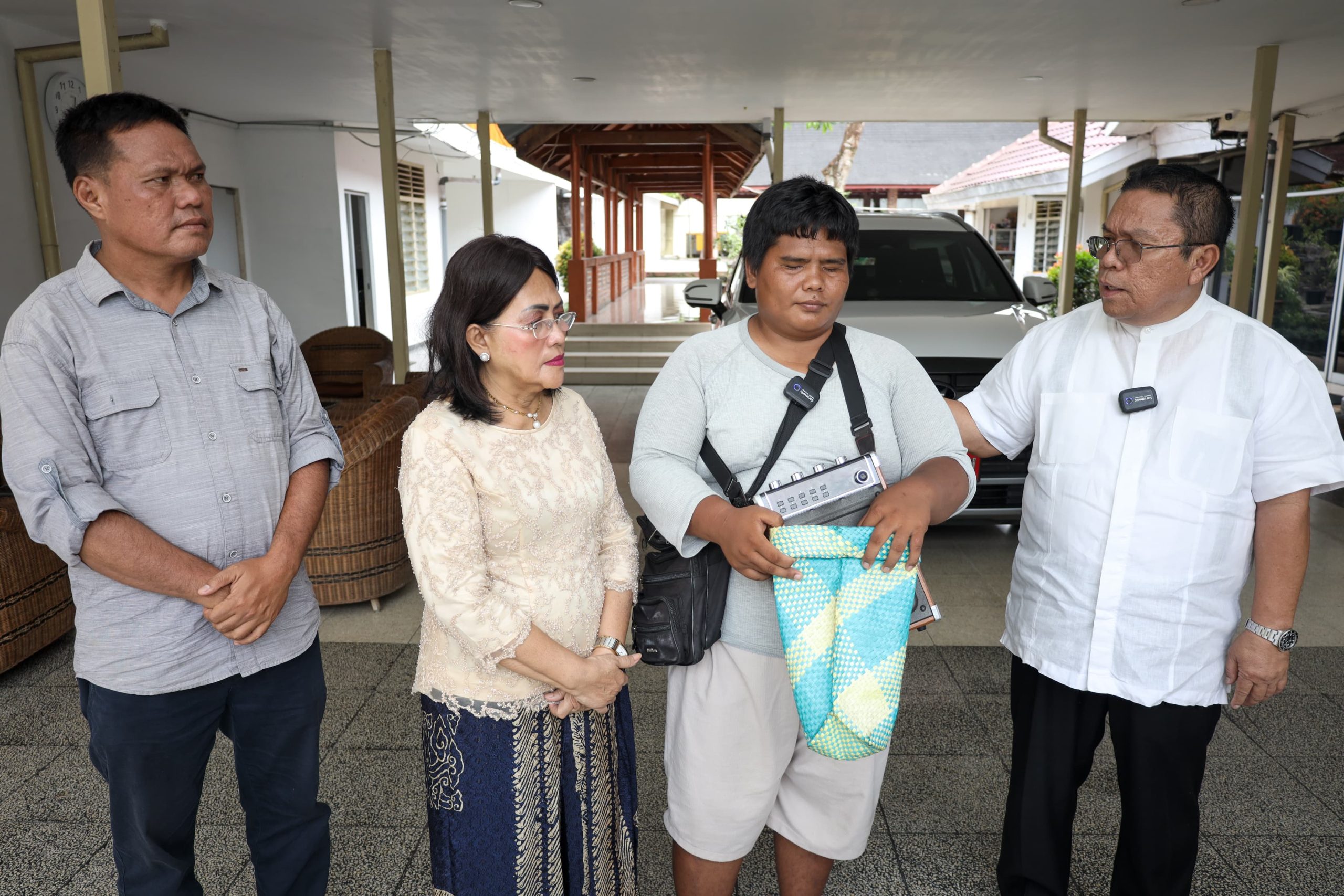 PEMATANGSIANTAR – Wali Kota Pematangsiantar Wesly Silalahi SH MKn mengundang pria pengamen tuna netra Heri Sandarman Hulu, datang ke rumah dinas wali kota, Jalan MH Sitorus Kelurahan Teladan Kecamatan Siantar Barat, Minggu (15/06/2025). Heri merupakan pengamen yang ditertibkan petugas Dinas Sosial Pemberdayaan Perempuan dan Perlindungan Anak (Dinsos P3A), Satpol PP, dan Polres Pematangsiantar beberapa hari lalu.