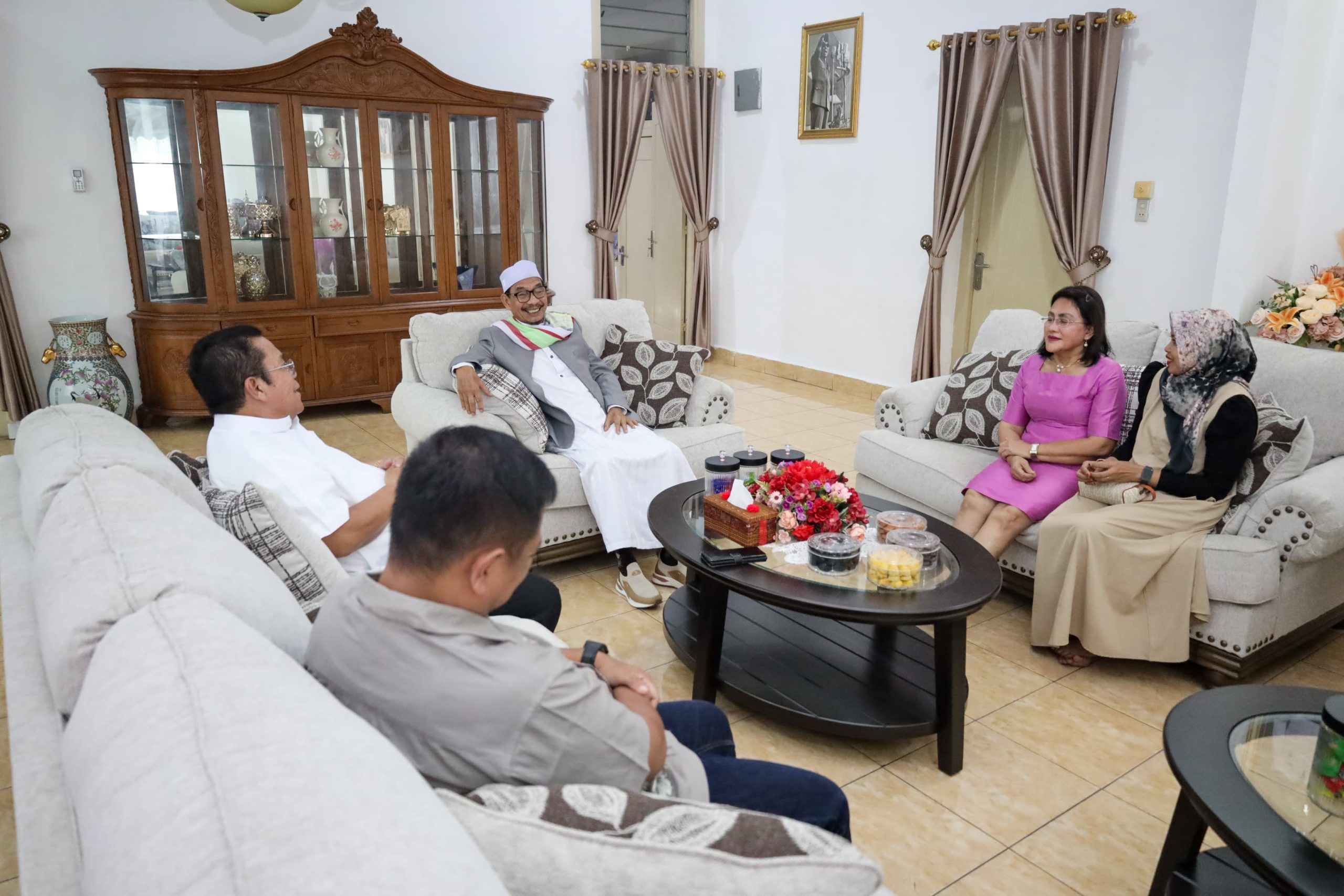Didampingi Ketua PKK Kota Pematangsiantar Ny Liswati Wesly Silalahi, Wesly dan Syekh Ali Akbar Marbun makan siang bersama. Suasana kekeluargaan terasa di antara mereka.