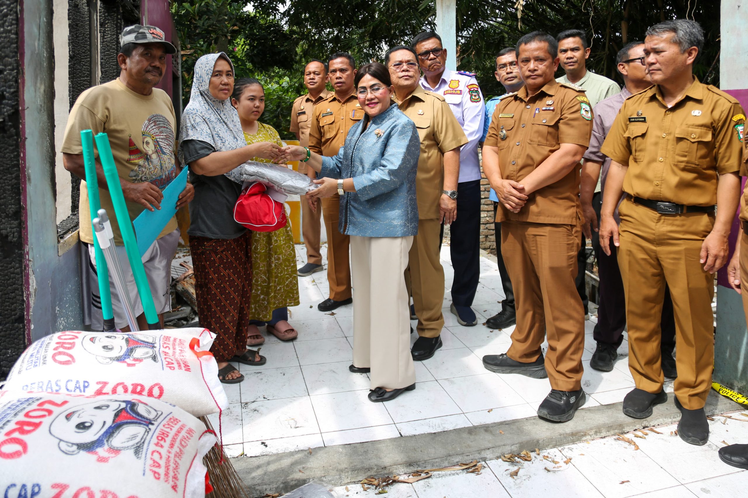 PEMATANGSIANTAR – Wali Kota Pematangsiantar Wesly Silalahi, SH, MKn, didampingi Ketua TP PKK Kota Pematangsiantar Ny. Liswati Wesly Silalahi, menyerahkan bantuan kepada keluarga Sulfan Solihin (63), korban kebakaran rumah di Jalan Kasuari, Kelurahan Sipinggol-pinggol, Kecamatan Siantar Barat, Selasa (20/01/2026). Rumah milik pensiunan TNI tersebut terbakar pada Kamis (15/01/2026).