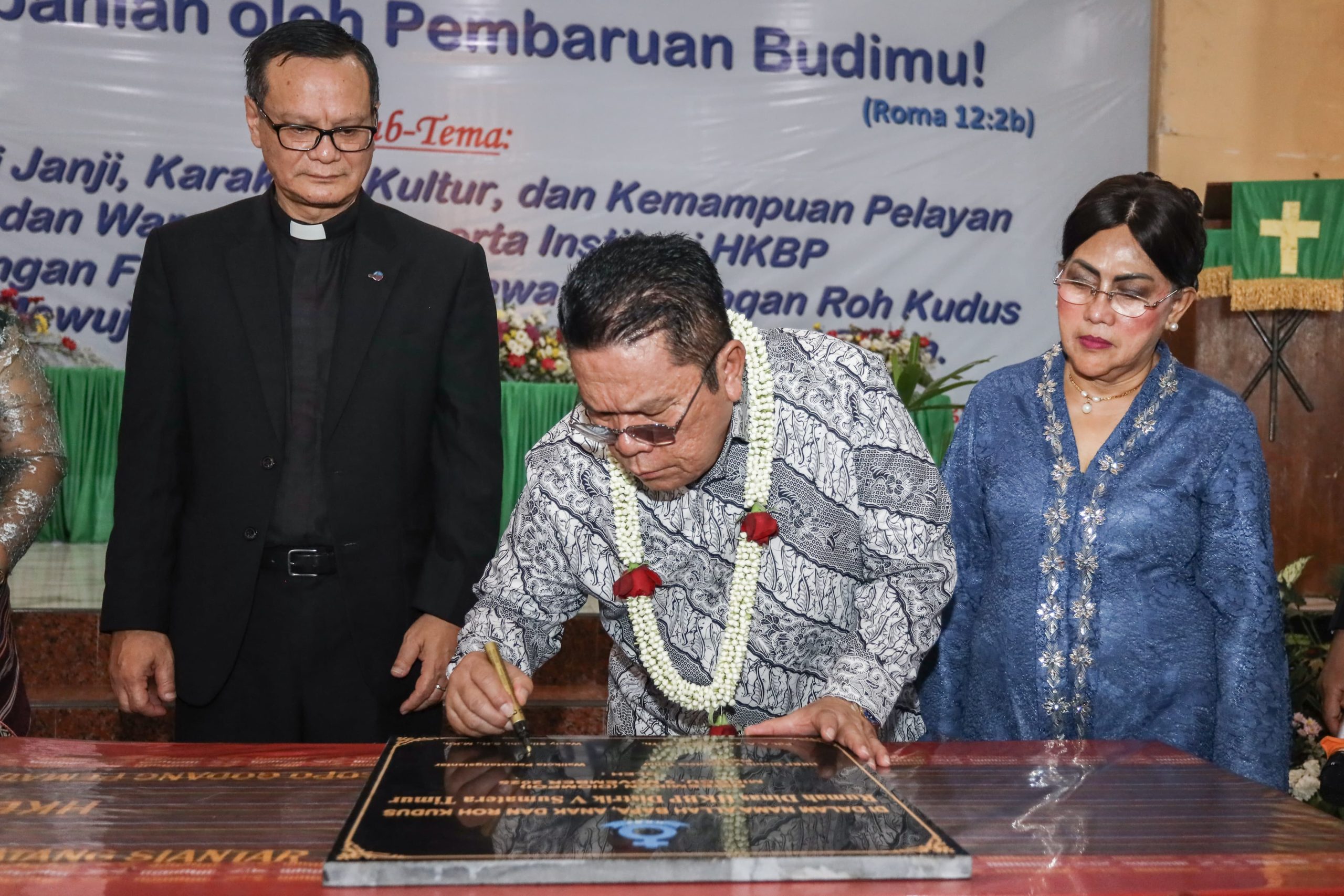 Kehadiran Wali Kota bersama istri disambut hangat oleh Praeses HKBP Distrik V Sumatera Timur Pdt. AA Zaitun Sihite, M.Th dan Ketua Umum Panitia Timbul Marganda Lingga, SH yang juga menjabat sebagai Ketua DPRD Kota Pematangsiantar.