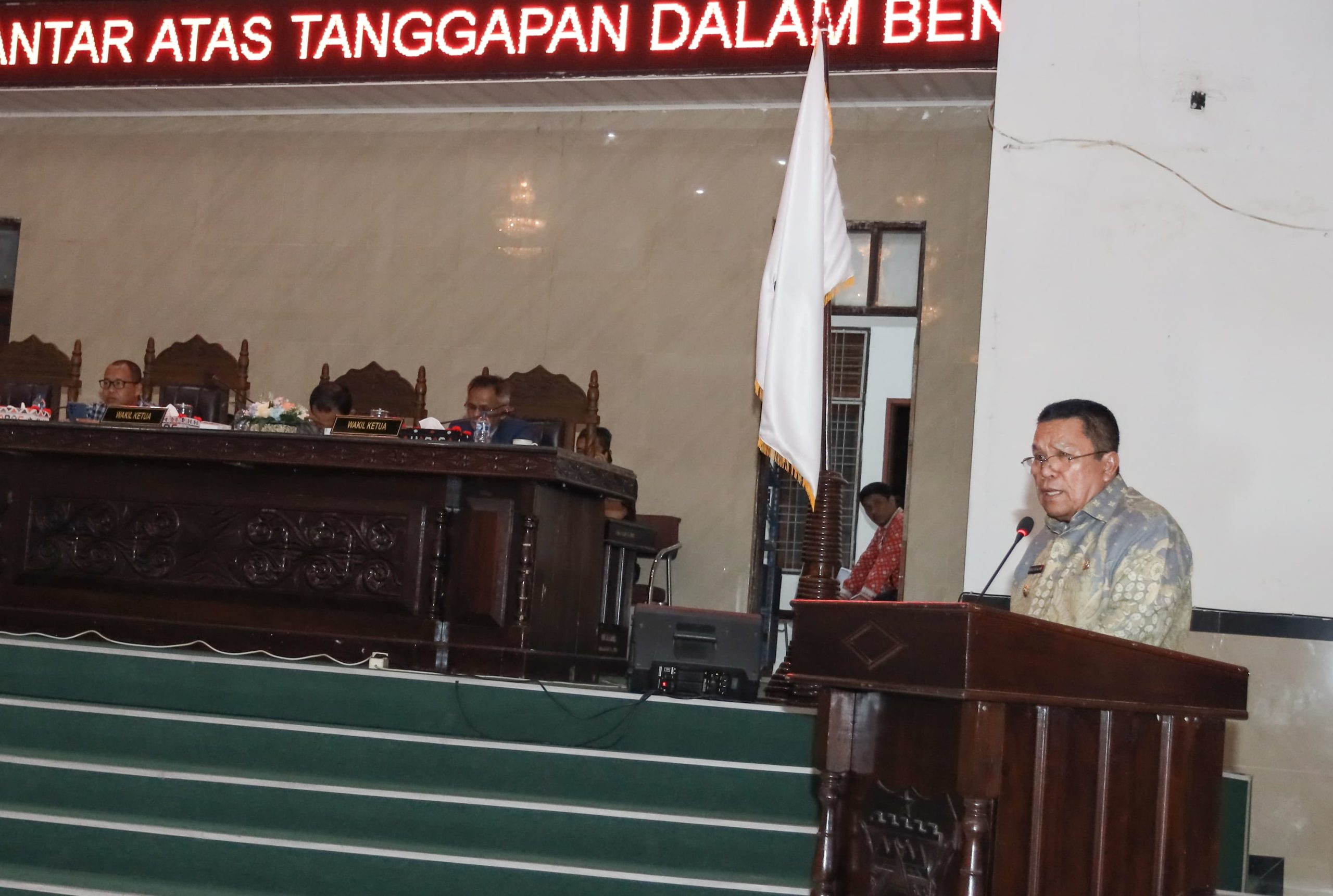 Rapat Paripurna dipimpin Ketua DPRD Kota Pematangsiantar Timbul Marganda Lingga SH, didampingi Wakil Ketua Ir Daud Simanjuntak MM dan Frengki Boy Saragih ST, serta dihadiri Sekretaris Daerah Junaedi Antonius Sitanggang SSTP MSi.