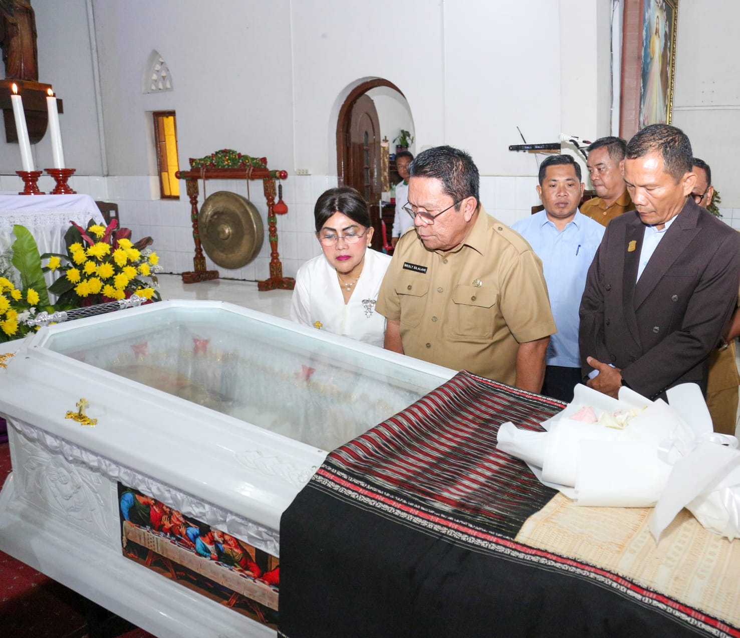 SIMALUNGUN — Wali Kota Pematangsiantar Wesly Silalahi, S.H., M.Kn., didampingi Ketua TP PKK Ny. Liswati Wesly Silalahi, melayat almarhum Uskup Emeritus Keuskupan Agung Medan, Mgr. Alfred Gonti Pius Datubara, OFMCap, di Gereja Katolik Paroki St. Laurentius Brindisi, Jalan Sibolga, Kelurahan Karo, Kecamatan Siantar Selatan, Senin (20/10/2025).