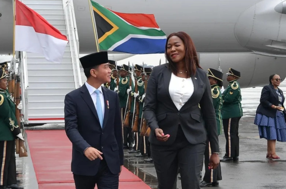 Turut menyambut kehadiran Wapres, Menteri Listrik dan Energi Afrika Selatan Kgosientsho Ramokgopa, Duta Besar LBBP RI untuk Afrika Selatan Saud Purwanto Krisnawan, dan Atase Pertahanan RI di Pretoria Kolonel (Mar) Guntur Almasyih.