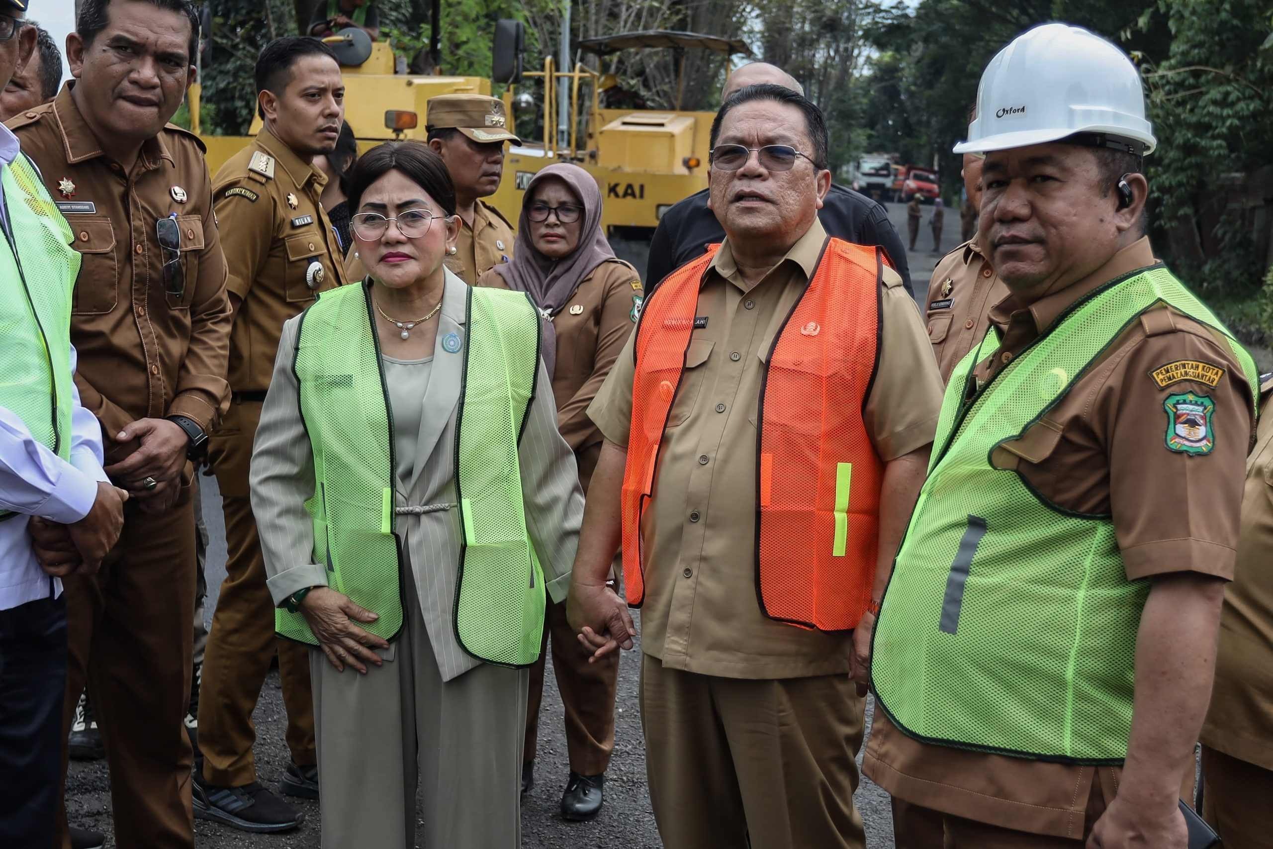 Penekanan tersebut disampaikan Wesly saat meninjau langsung pengerjaan rehabilitasi Jalan AMD Kelurahan Tanjung Pinggir Kecamatan Siantar Martoba, Selasa (25/11/2025). Wesly datang didampingi Ketua TP PKK Ny Liswati Wesly Silalahi dan disambut sejumlah pimpinan OPD terkait.