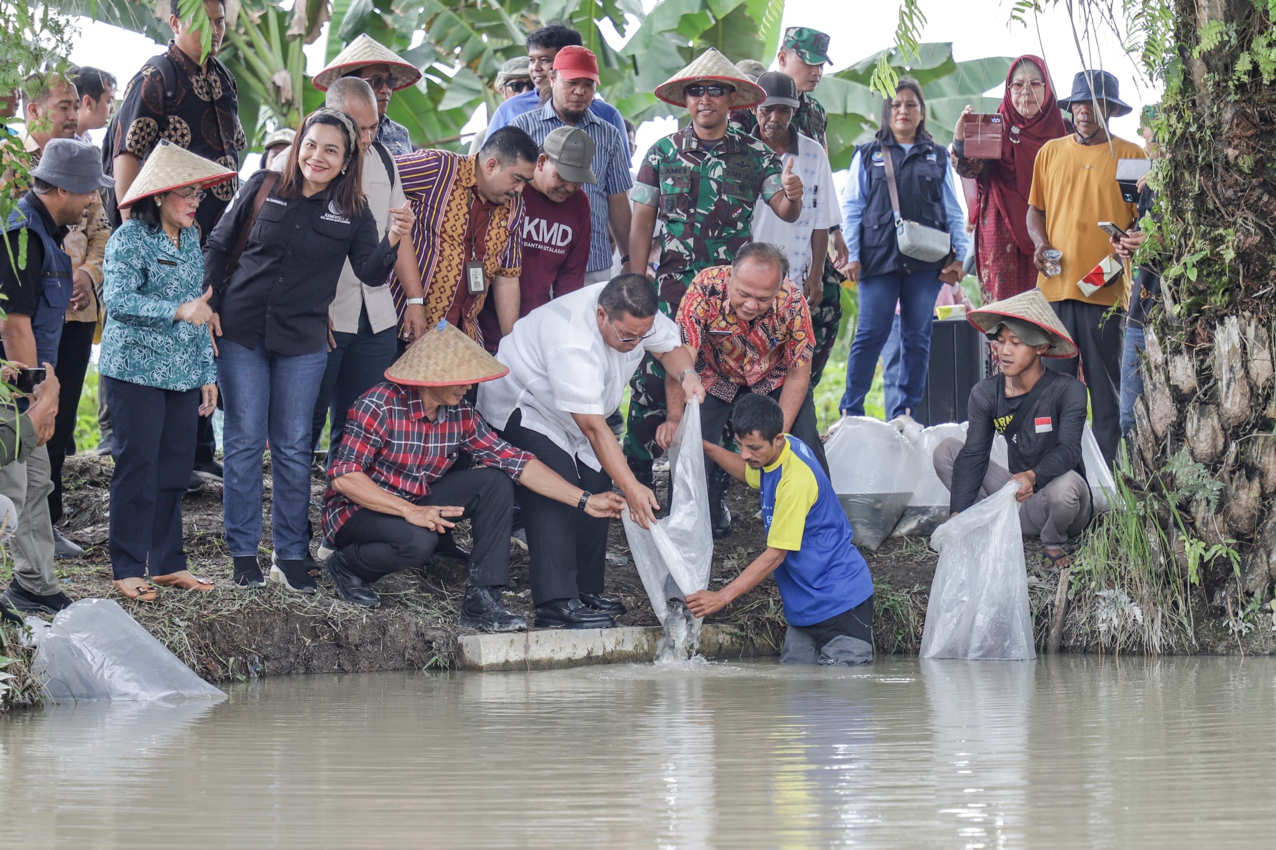 Acara tanam padi serentak juga diisi dengan sejumlah penyerahan bantuan yang diserahkan Wesly bersama Unsur Forkopimda. Bantuan yang diserahkan yakni, benih padi unggul bersertifikat Inpari 32, bantuan benih jagung unggul bersertifikat varitas Pioneer 32, dan penaburan bibit ikan nila ke kolam kelompok tani sebanyak 1.000 ekor.